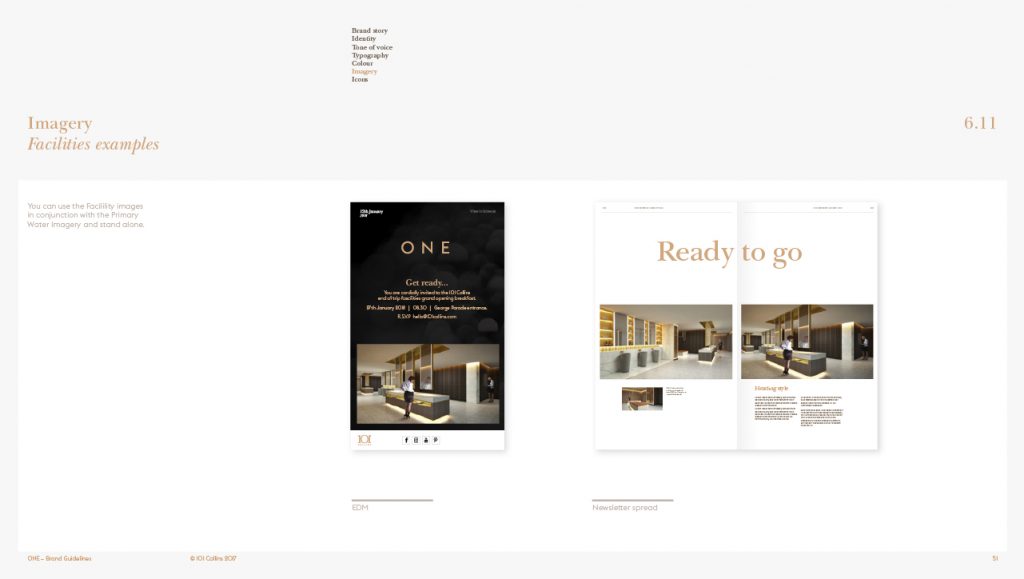 We created a new brand strategy and brand design for their ‘End of Trip’ facilities to work with the 101 Collins Master brand. It’s a place where convenience and practicality meet style and elegance; where tenants can change in a chic, modern space.